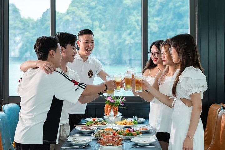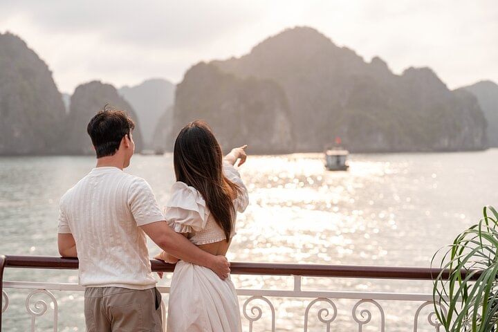 Experience an unparalleled adventure on the grandest cruise in Halong Bay with this captivating tour. Immerse yourself in the wonders of Surprise Cave, the charm of Cua Van fishing village, and the magic of Luon Cave. Engage in exhilarating activities such as kayaking, squid fishing, and witnessing breathtaking sunsets. Find serenity in the spacious cabins as you embark on the ultimate journey of a lifetime.