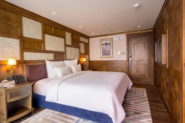 With this enthralling excursion, you will have an unforgettable adventure on the biggest boat in Halong Bay. Discover the delights of Surprise Cave, the charm of Sung Sot cave, Bai Tu Long and the enchantment of Luon Cave. Exciting activities include kayaking, squid fishing, and watching magnificent sunsets. As you begin on the ultimate voyage of a lifetime, find peace in the large accommodations.