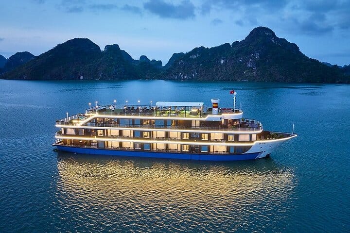 Luxury Cruise to Halong & Lan Ha Bay 3 Days 2 Nights is an ideal choice for travelers seeking a high-end and authentic experience, combining modern luxury with traditional design while exploring the stunning natural beauty of Halong Bay, Lan Ha Bay and Cat Ba Island. This all-inclusive journey features a unique, less-crowded itinerary with exciting activities such as kayaking, swimming, cycling in Viet Hai Village, squid fishing at night, Tai Chi at sunrise and sunset viewing on the bay, along with private balcony cabins connecting you closely to nature. With only 2.5 hours limousine transfer from Hanoi via expressway and a professional, friendly crew providing excellent service, this 3-day 2-night luxury cruise promises comfort, relaxation and unforgettable moments in one of Vietnam’s most spectacular UNESCO-listed destinations.