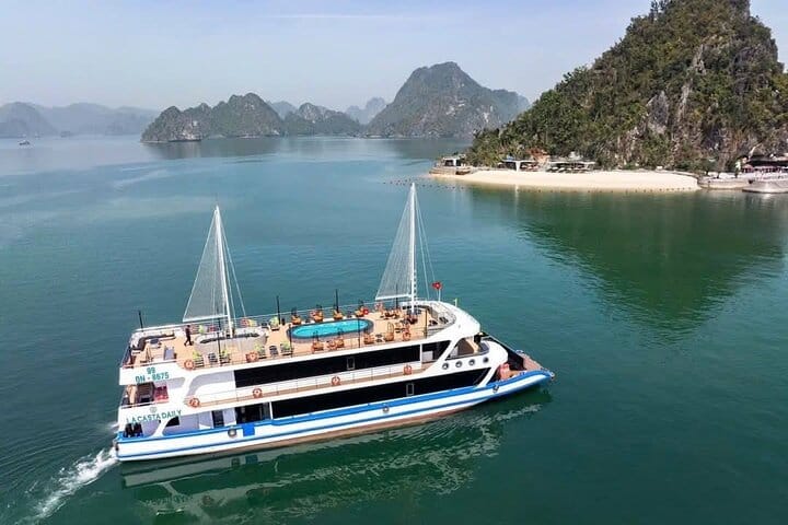 Experience the ultimate Halong Bay Luxury 7-Hour Tour from Hanoi with limousine transfer and a delicious buffet lunch on board. Depart from Hanoi in comfort and enjoy the scenic drive to Ha Long Bay, a UNESCO World Heritage Site renowned for its towering limestone karsts and emerald waters. Cruise through the bay, explore stunning caves, kayak or swim in secluded lagoons, and relax on the sundeck while soaking in the breathtaking landscapes. This best-selling luxury day tour combines comfort, adventure, and local cuisine, making it the perfect way to discover the natural wonders of Halong Bay in just one day.