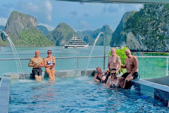 Join a 1-day luxury cruise from Hanoi for a 7.5-hour unforgettable journey through Ha Long Bay and Lan Ha Bay. Enjoy a buffet lunch with panoramic views, explore Dark and Bright Caves by bamboo boat, kayak in crystal-clear waters, and swim in serene lagoons. Participate in a hands-on cooking demonstration making traditional Vietnamese spring rolls, and end the day with a sunset party on the sundeck, surrounded by the breathtaking natural beauty of the bay. This cruise combines cultural experiences, natural wonders, and relaxation for the ultimate Ha Long Bay adventure.