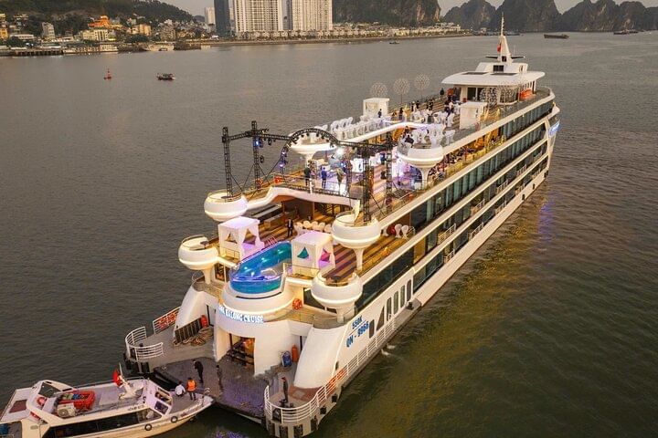 Luna Halong Cruise is the ultimate 5-star luxury day cruise in Halong Bay, offering a perfect mix of sightseeing and relaxation. Featuring a unique 360-degree double sundeck, two elegant restaurants with seating for up to 550 guests, and Vietnam’s first outdoor glass-bottom pool, Luna Cruise provides an unforgettable experience. Enjoy world-class amenities and entertainment as you journey through the breathtaking UNESCO World Heritage site of Halong Bay in style and comfort.