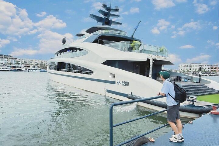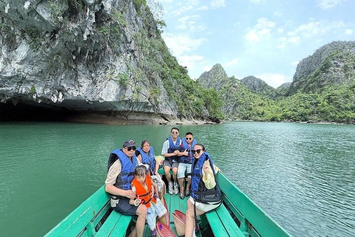 Enjoy a luxury 5-star cruise through Ha Long Bay and Lan Ha Bay with convenient pickup from Ha Long City. Savor a delicious buffet lunch while admiring stunning limestone islands. Explore the Dark and Bright Cave by bamboo boat, kayak in the crystal-clear waters of Lan Ha Bay, and swim in a peaceful paradise. Join a cooking demonstration to learn traditional Vietnamese spring rolls, then relax at a sunset party on the sundeck. This premium day cruise offers the perfect mix of natural beauty, cultural experiences, and relaxation for an unforgettable journey.